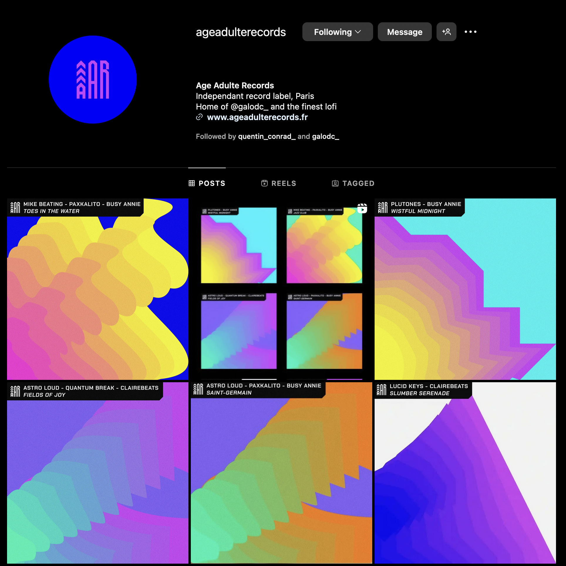 The identity is developed through the label’s record’s artworks. We did not design them individually but instead created a whole design system that allows to create an infinite amount of variations. The pattern is based on a growing shape, made of two illustrator symbols that can be swapped with any other from the library. The typeface chosen for the identity has bevelled corners, like the logotype, so that it blends well.