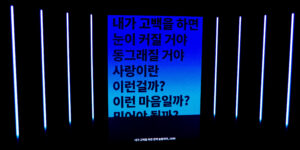 In this specific context, Boundless displays excerpts from lyrics of selected Korean love songs emphasising the rhythm and mood of each song through colours, layout and lighting patterns on the LEDs. The whole room lighting up feels like an enthralling karaoke-esque installation transporting the visitors through time revisiting iconic pop songs from the 50s until today, revealing their most noteworthy hooks.