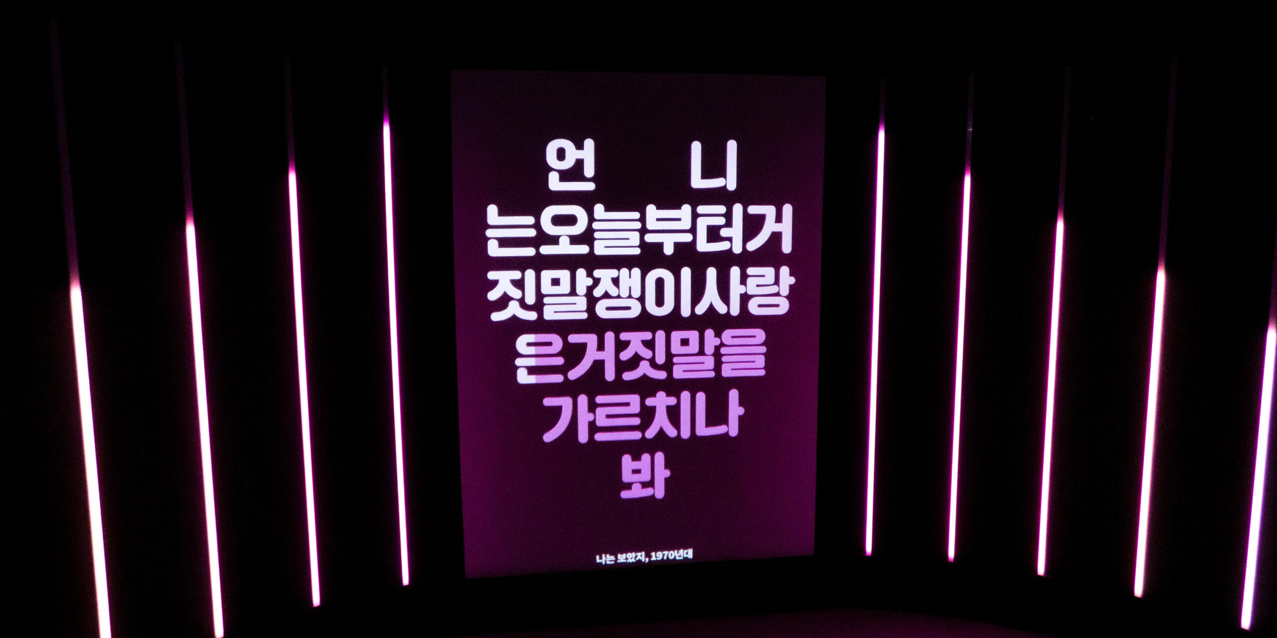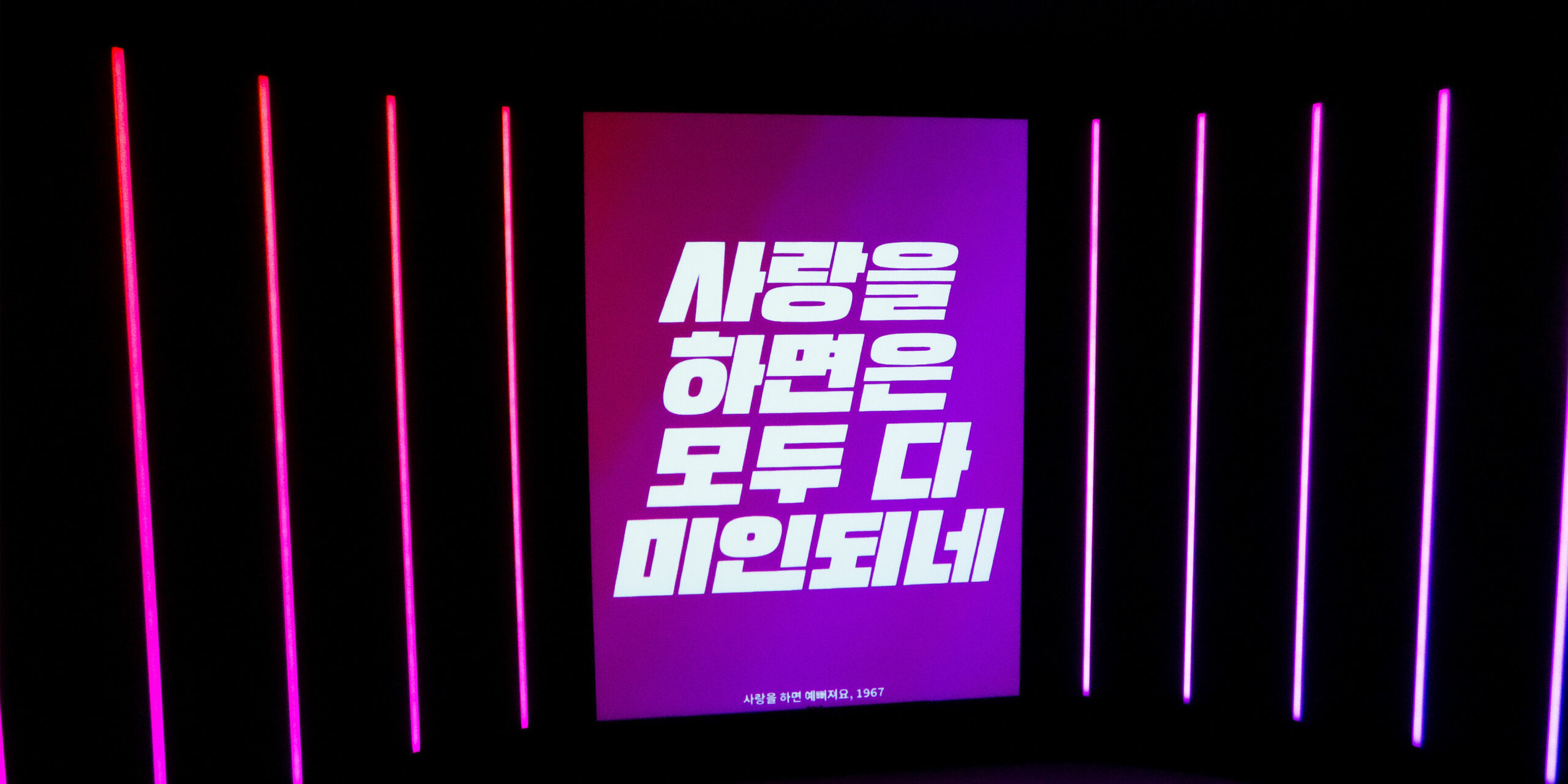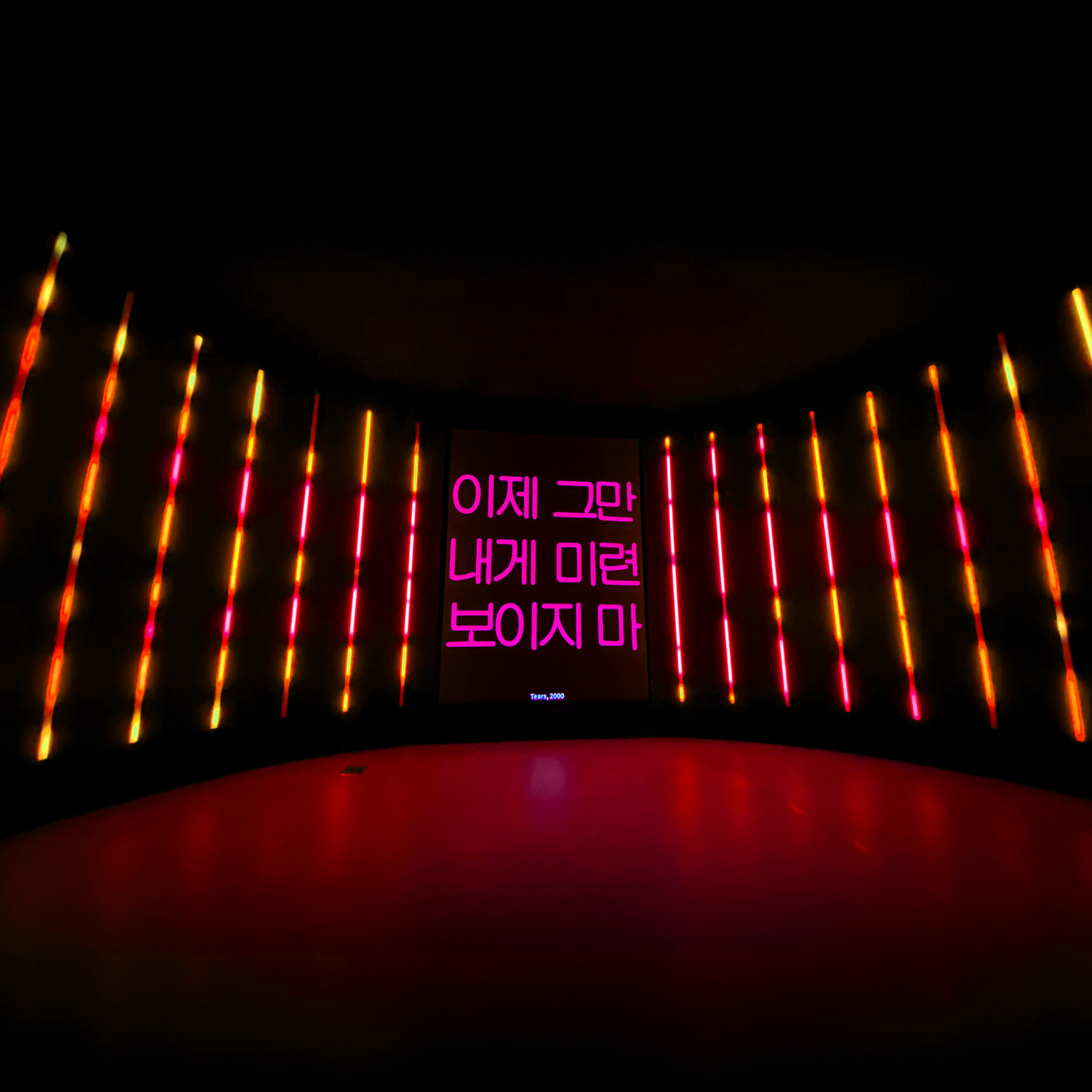 In this specific context, Boundless displays excerpts from lyrics of selected Korean love songs emphasising the rhythm and mood of each song through colours, layout and lighting patterns on the LEDs. The whole room lighting up feels like an enthralling karaoke-esque installation transporting the visitors through time revisiting iconic pop songs from the 50s until today, revealing their most noteworthy hooks.