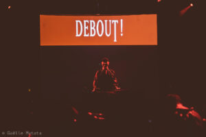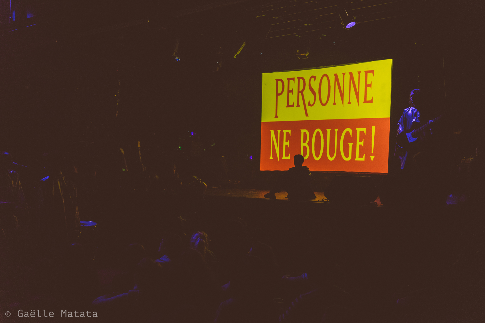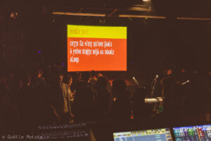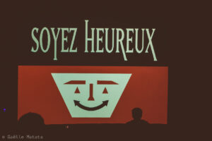 We were asked to participate in this creation, an original piece combining, music, dance and video for the festival Magic Barbès in Paris. As the show was thought out to be interacting with the audience we created a set of masterful instructions (which read as “stand up”, “be happy”, “forget everything” amongst other) as if the spectators were part of an overbearing regime.